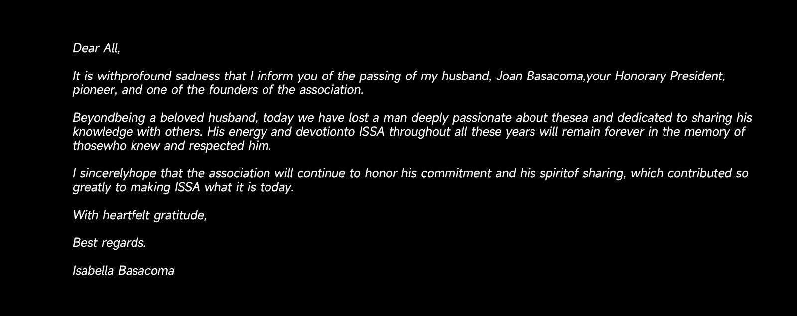 In this difficult time, we share with you a heartfelt letter from Juan's wife, addressed to all ISSA members.